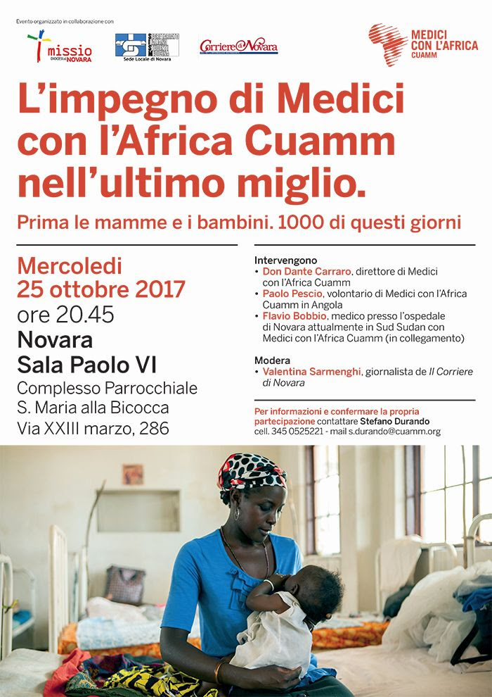 - 25 ottobre – NOVARA con Don Dante Carraro, Paolo Pescio ed in collegamento da Yirol (Sud Sudan) il dott. Flavio Bobbio